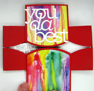 In my newest video I share many interactive encouragement and thank you cards that feature new dies and papers from some favorite companies. The card above was created with the Triple Tier Die Set and Watercolor Paper Pad from Divinity Designs. The sentiment die is a favorite from Sue Wilson. Just look at what happens when the ribbon on top is pulled:
